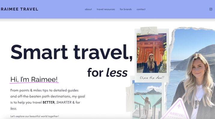 Raimee travels blog screenshotRaimee is one of the best new creators out there. She used to run the social media for this site but has since gone on to do her own thing, teaching people how to travel smarter via incredible videos on Instagram and TikTok. Her website features lots of incredible itineraries, guides, and advice for young travelers.